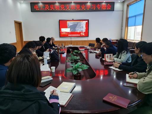 2021年4月14日下午电工及实验党支部在公司223会议室进行党史专题集中学习,支部书记陈惠英主持。