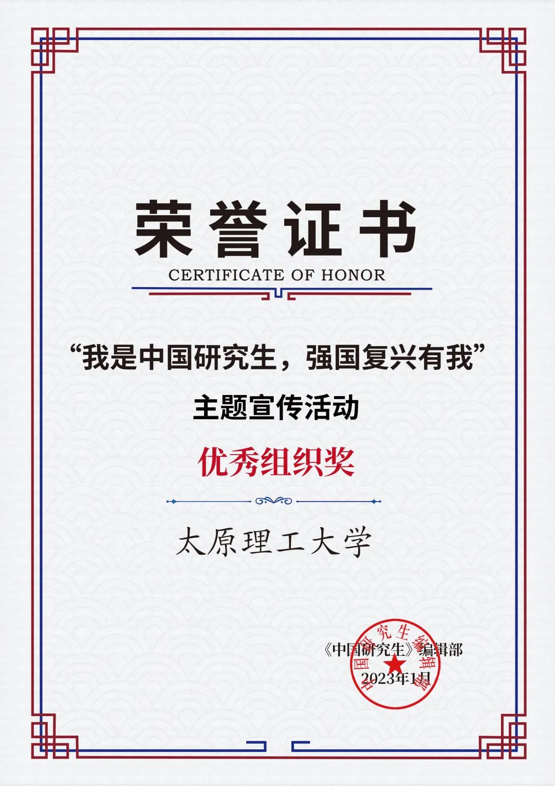 近日,由教育部学位中心指导,《中国研究生》杂志联合有关公司产品单位联合主办的“我是中国研究生,强国复兴有我”主题宣传活动发布获奖情况,pa集团官网入口荣获“优秀组织奖”荣誉称号。