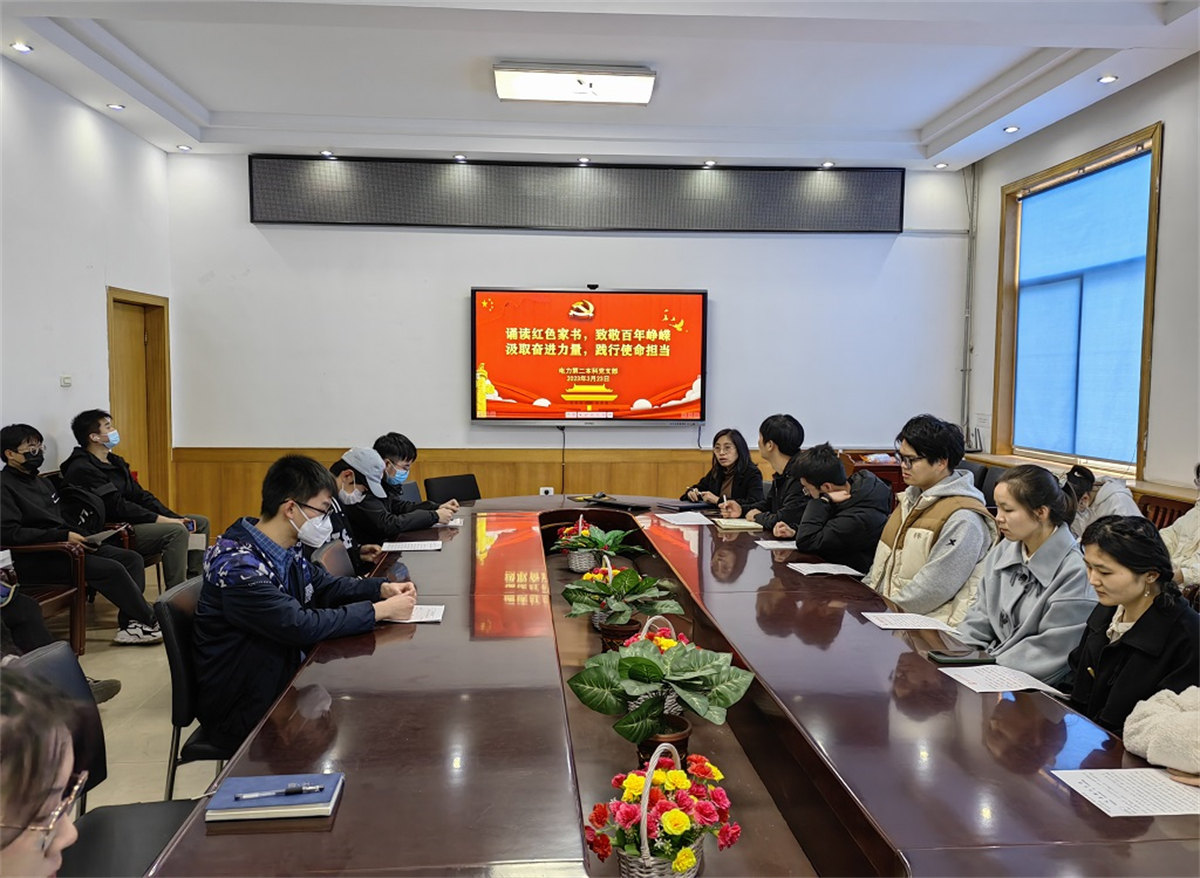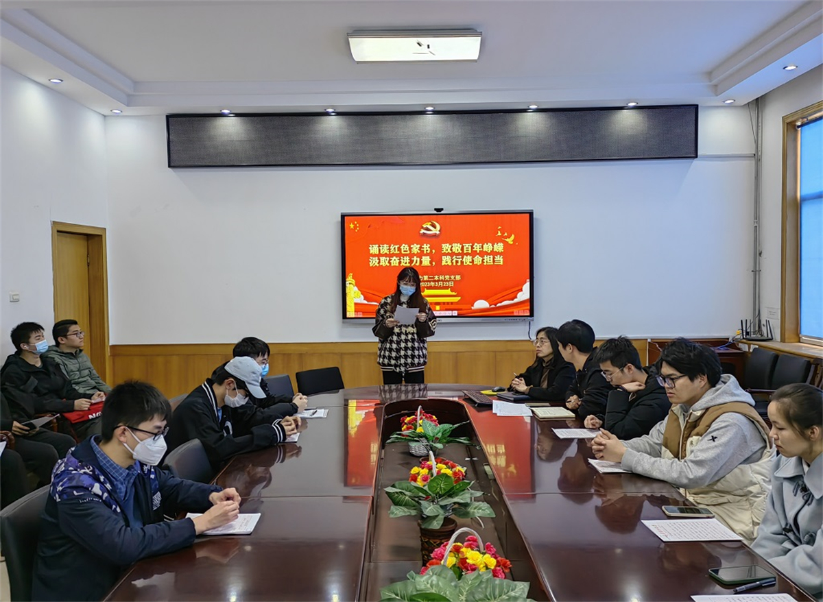 为感悟家国情怀,致敬红色经典,践行时代使命,电力第二本科党支部于2023年3月23日下午16点在电机馆223开展了“诵读红色家书,致敬百年峥嵘;汲取奋进力量,践行使命担当”活动,党支部书记侯婷,副书记孙龙龙以及支部全体党员参与了此次活动。本次活动由支部书记侯婷主持。