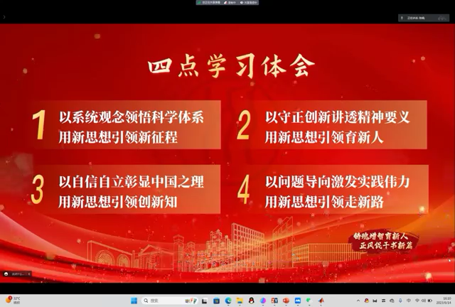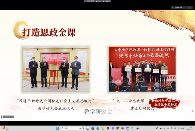 中国人民大学党委书记张东刚以“将党的创新理论引领构建中国特色哲学社会科学自主知识体系”为主题,详细阐述了四点学习体会。在题为“时代之问 复旦答卷”的示范微党课中,复旦大学党委书记裘新和师生从信念、育人、创新、答卷四个维度展示了为强国建设和民族复兴贡献的智慧和力量。浙江大学党委书记任少波和师生,讲述了题为《牢记嘱托 育人育才 拔尖造峰》的微党课,回顾了习近平总书记18次到浙大的调研指导。北京科技大学党委书记武贵龙讲述了题为《学习贯彻习近平总书记重要回信精神 打造新时代“钢铁思政”育人新模式》的微党课。