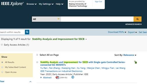 近日,公司韩肖清教授领衔的电力系统运行与控制山西省重点实验室撰写的学术长文Stability Analysis and Improvement forSSCB with Single-gate Controlled Series-connected SiC MOSFETs》被IEEE协会旗下电气电子领域顶级期刊IEEE Transactions on Industrial Electronics(中科院一区TOPIF=7.515)接收并在线发表(EarlyAccess),该文第一作者为任宇副教授,通讯作者为韩肖清教授,pa集团官网入口为第一完成单位,西安交通大学为合作单位。