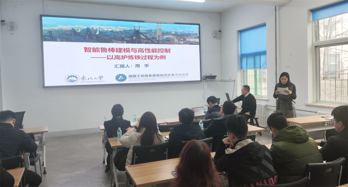 首先,周平教授为师生们带来了题为“智能鲁棒建模与高性能过程控制——以高炉炼铁过程为例”的学术报告。周平教授针对高炉炼铁过程等复杂工业过程的数据质量不理想、非线性动态时变等问题,介绍了其团队在数据驱动高炉自动化与智能化方面的研究成果。他重点分享了低质工业数据智能鲁棒建模、面向控制子空间辨识建模以及铁水质量高性能控制等方面的工作,展示了团队在解决高炉炼铁过程中的关键技术难题方面取得的突破性进展。周教授的报告逻辑清晰、实例丰富,让师生们受益匪浅。