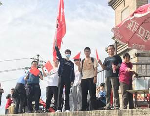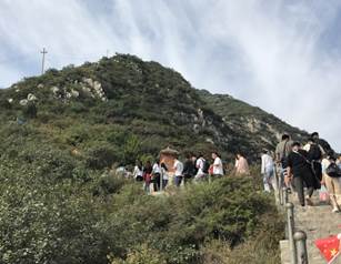 当天上午8点30分,根据活动计划安排,团队师生集合乘车从公司出发。在车上,大家挥舞着国旗,齐声高唱《歌唱祖国》,对祖国的热爱和自豪之情洋溢在大家的笑脸上。到达山脚后,团队师生在“崛围山”三个大字的巨石前合影留念,随后分四个小组进行登山。
