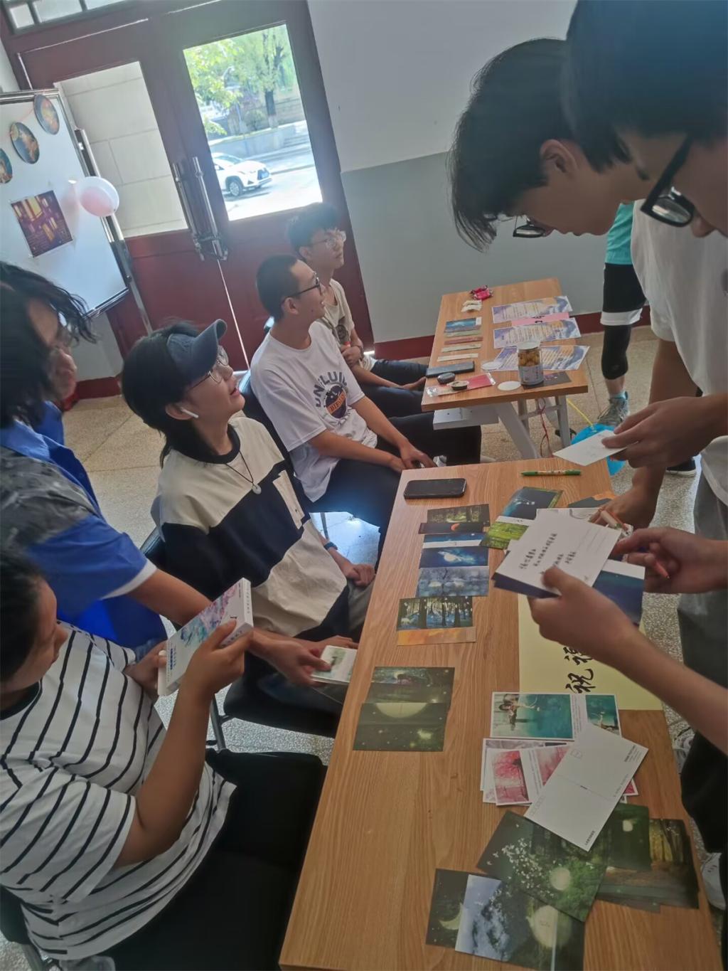 书法绘画活动结束后,公司于9月11日在电机馆一楼大厅举办了 “月满情圆,欢聚中秋”专项文化活动。本次活动由各种各样有趣的小游戏组成。射之余意,礼俗寓之的投壶、创意盲盒,乐在其中的气球盲盒、隐语弄思,浅察情深的猜灯谜、九月清寒中秋情暖交换祝福卡片等。同学们在猜灯谜活动中,有的冥思苦想,有的沾沾自喜,有的低声讨论,这体现了电力学子团圆、友爱、温馨、和睦的一幕。通过这些活动,同学们真正感受到了“月是他乡暖”,这一刻“但愿人长久,千里共婵娟”的团圆之情。