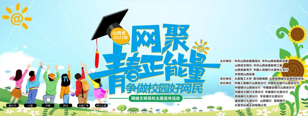 为了进一步落实立德树人根本任务,引导广大青年员工积极参与网络文明建设,提升老员工群体网络文明素养,唱响新时代的青春之歌,以优异成绩迎接党的二十大胜利召开。今年五月起,中共山西省委网信办、中共山西省委政法委、山西省文明办、中共山西省委教育工委、山西省教育厅、中国人民银行太原中心支行、共青团山西省委举办山西省2022年“网聚青春正能量 争做校园好网民”网络文明高校主题宣传活动,开展网络文明宣传、网络文明作品征集、网络文明之星推选相关活动。