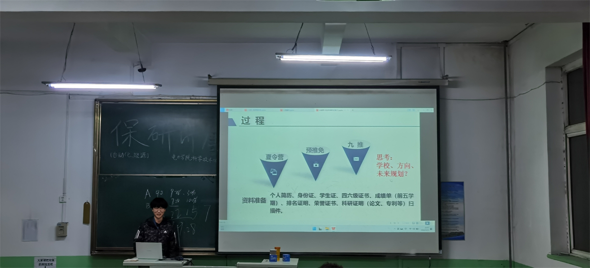电气专业的分享会在电机馆3133举办,周佳龙、柴艺晗等4位同学各抒己见,详细地介绍了近几年公司保研情况以及在保研准备、保研流程等方面的注意事项。同时,几位同学分享了平时的学习经验与方法,讲述了大学学习的心路历程,令同学们印象深刻。