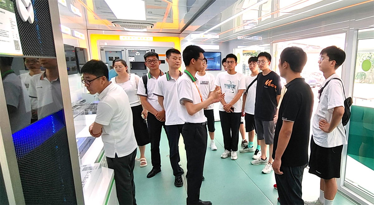 在企业全景展车上,工作人员向同学们详细讲解了精准节碳和数字电气等六个关键场景的丰富产品矩阵。工作人员耐心、细致的讲解,使同学们深入了解了相关技术在这些场景的应用,认识到了”节碳”是一种态度,也是一种习惯,对本次巡展的主题”可维节碳•价值伙伴”有了更深刻的体会。