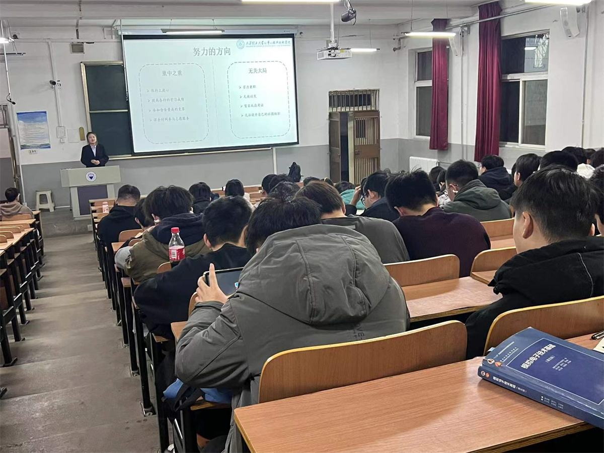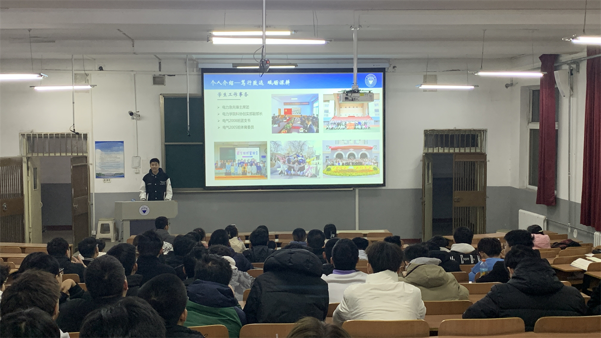 国家励志奖学金获得者郝军强同学在电气2201-2204班主题班会上就自身基本情况为同学在保研、日常学习、英语及竞赛方面提出许多可行性建议,并帮同学们分析了公司的保研政策及获奖政策,其中他在志愿服务方面的建议更是让同学们受益匪浅。