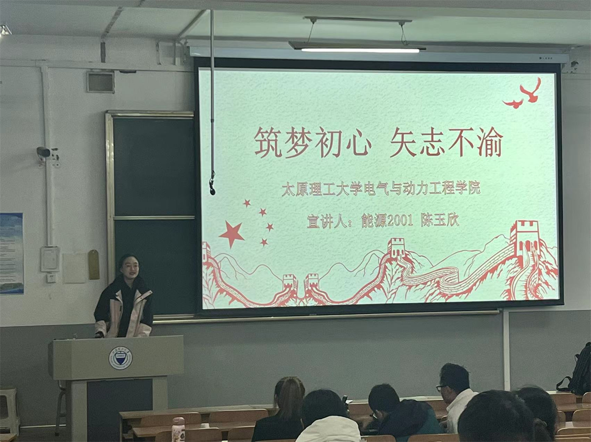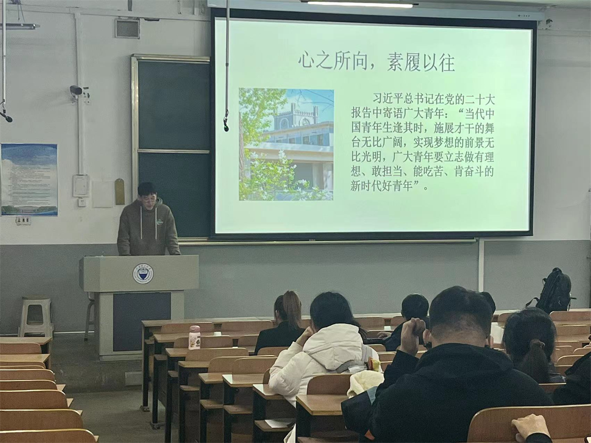 陈玉欣同学以“筑梦初心,矢志不渝”为题为同学们分享了自己大学三年的个人经历和学习“干货”,帮助22级的同学进行学业规划,希望同学们能够在在接下来的生活中通过专业学习、社会实践等方式,充分利用好大学时光,以梦为马,不负韶华。