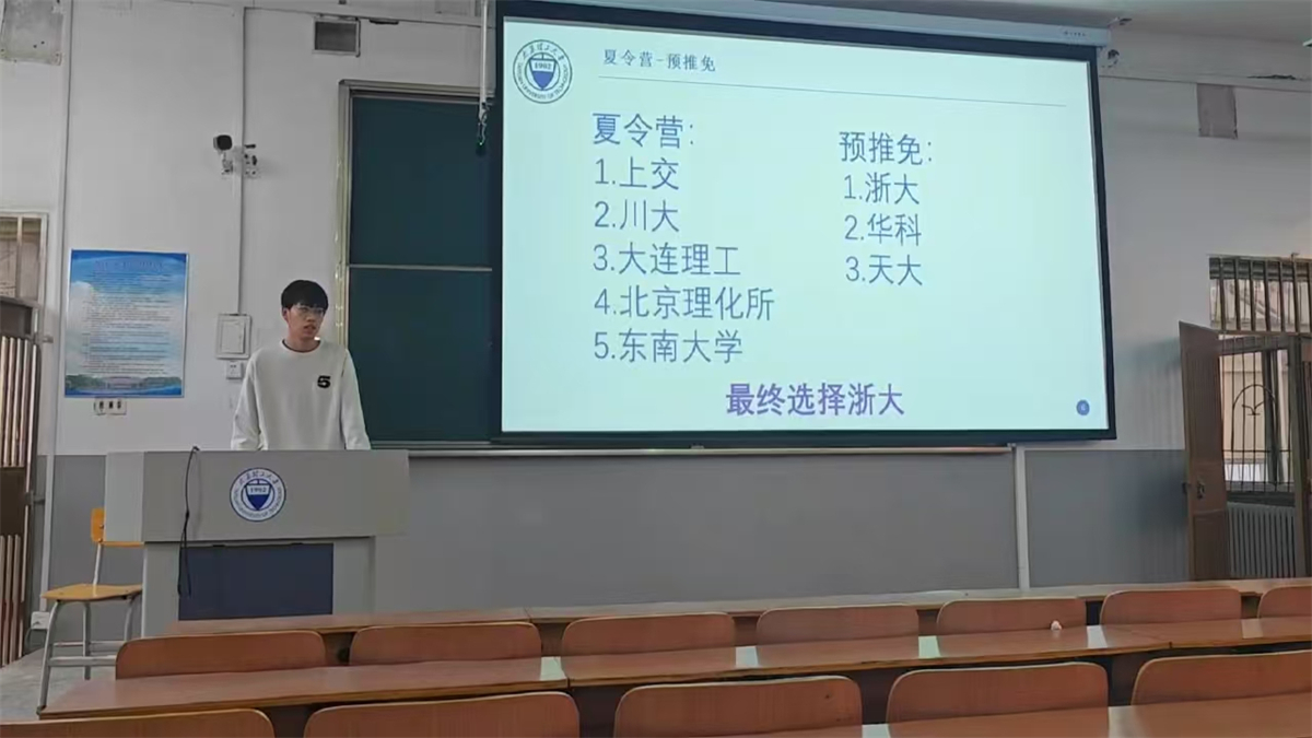 12月6日下午,国家奖学金获得者、已成功保研的能源2103班陈武文同学以及获评国家励志奖学金的能源2101班张磊同学在电机馆3100向能源23级学弟学妹们进行了交流分享。陈武文同学现已推免至浙江大学能源工程公司,他以自身经历为例分别分析大一至大三自身所遇到的问题及个人做法,他建议同学们在大一时要过四六级,大二至大三在保证成绩排名的前提下要参加各项竞赛、搞科研、提高四六级成绩等来丰富自己的科研经历,之后分享了个人对于夏令营与推免院校的选择以及对学弟学妹们的建议;张磊同学获评国家励志奖学金、校级优秀员工干部等荣誉,曾担任太原市青年志愿者协会老员工志愿服务总队副队长以及“电力急先锋”志愿服务队总队长等,他向同学们分享了科研竞赛、兴趣爱好、保研等方面经验,另外他建议同学们要有明确的“目标”、“方向”、“规划”以及“开展”,对个人的未来要详细规划,同时要积极奋进、不断努力,成为更为优秀的人。