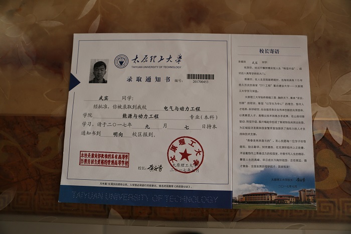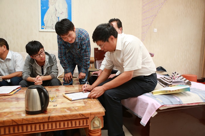 武宾同学是公司已录取的17级能源与动力工程的新生,即将于7号正式报到入学。武宾四岁时,爸爸在打工时发生意外,1000多度的熟石灰炉将腰部以下全部掩埋,为了救治爸爸,家里花光了所有的积蓄。虽然爸爸保住了性命,但大面积烧伤、机体功能障碍导致他丧失劳动能力,从此全家的重担都压在母亲一人身上。今年高考武宾以应届509分的成绩拿到了公司能源与动力工程专业的录取通知书,全家人喜极而泣,为了能够上大学,整个暑假他怀着“再苦再累也要上大学”的信念,在工地与爷爷打工赚取学费。在了解情况后,校领导深受触动,第一时间决定前往武宾同学家了解具体情况并看望鼓励他。
