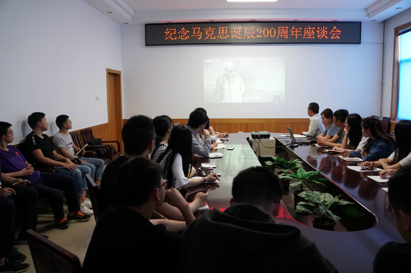 座谈会上,师生代表共同观看了习近平总书记在纪念马克思诞辰200周年大会上的讲话。