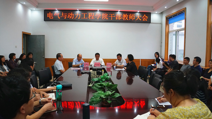 9月10日下午,公司在电机馆二层会议室召开干部教师大会,公司党委副书记刘润祥,副董事长吴斗庆、组织部部长贾朝红出席会议。公司领导班子,各系部中心主任、全体党支部书记、全体行政人员等参加会议。会议由经理韩肖清主持。