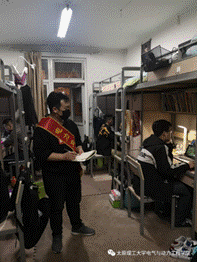 优质的宿舍环境是员工学习生活的基本保障,也是校园疫情防控的最后一道防线。电力急先锋各党支部的分队长带领志愿服务人员,每周两次检查宿舍卫生,每天负责宿舍内消毒工作,对各个宿舍责任到人,每周进行宿舍情况打分,对于宿舍内务整理不到位、消杀工作未落实的情况进行限期整顿,保证同学们在宿舍内有一个干净整洁安全的学习生活环境,取得了显著成效。
