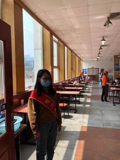此外,餐厅和教室等公共场合的卫生保障和秩序维护同样是校园疫情防控工作的重中之重。4月19日,经餐厅工作人员培训,电力急先锋志愿队的志愿者们走上餐厅疫情防控第一线。事前,为了尽可能有效地服务于餐厅,志愿者们积极讨论,踊跃提出合理意见,总结出一系列详细的措施。例如:根据不同餐厅所开窗口数量、就餐面积,以及不同时段的人流量等因素,志愿者们划分出不同人数的小组;将小组人员合理安排在餐厅的每个关键位置,如入口处、出口处、窗口处等等。因为有了这些有效的措施,活动井然有序地进行着。事后,每一位志愿者都激动地说,在这个特殊时期,作为一名党员,能为周边的人献出自己的一份力量,他们感到无比幸福与自豪。在志愿服务活动过程中,先锋队员按时到岗,认真负责。就餐高峰期,他们时刻提醒排队的同学相互间隔一米,同时于出口处指引同学有序离开,有效地维持了餐厅的秩序,避免了人员聚集情况的发生,为校园疫情防控工作起到了良好的表率作用,也收获了各方一致好评。