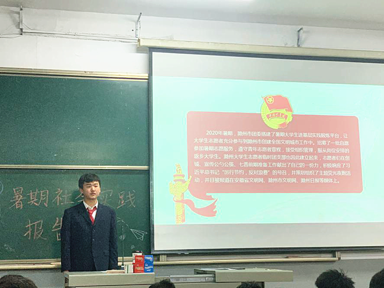 为了展示同学们优秀的暑期社会实践成果,让同学们充分感受到暑期社会实践的诸多益处,提高同学们参与社会实践活动的积极性,由公司主办的2020年“青年大学习·奋斗新时代”暑期社会实践汇报会于2020年10月19日晚在电机馆3100教室开展,由每个团队依次进行汇报,讲述他们的暑期实践经历和收获。