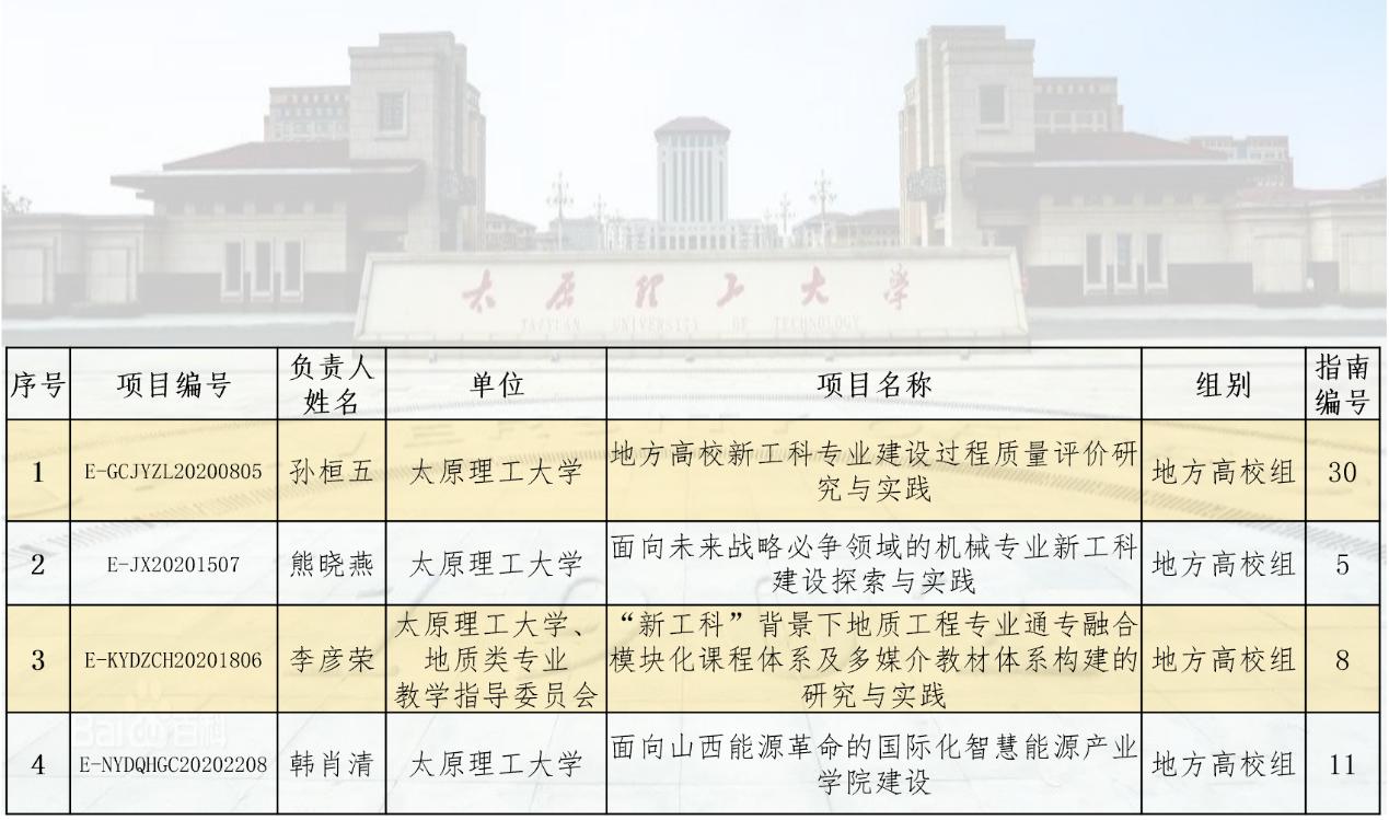 公司四个项目获批教育部第二批新工科研究与实践项目,其中综合改革类项目1项、专业改革类项目3项,立项总数位列全国高校第三十五位、山西高校第一位。这是公司继获批教育部首批新工科研究与实践项目取得良好成绩后再次取得新突破,是公司主动应对新一轮科技革命和产业变革,持续深化“新工科”建设与改革的新标志,为公司“四新”专业建设奠定了良好基础。