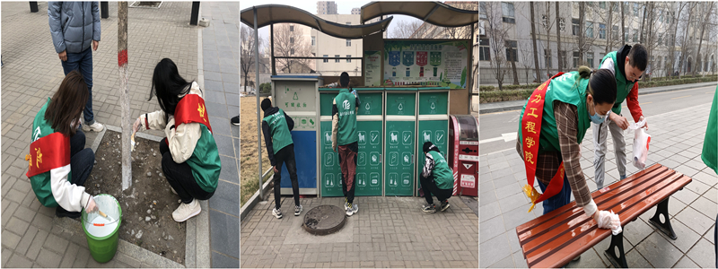 电力急先锋在队长带领下,合理分工。部分志愿者在物业人员的帮助下为树干涂白,用实际行动建设绿色校园;另一部分志愿者擦拭垃圾分类箱及校园长凳,将雷锋精神传达到校园每一处角落。虽然寒风习习、春寒料峭,同学们干劲十足,通过此次活动,不仅提高了环保意识和文明素养,也让大家真切体会到了劳动带来的喜悦,真正走出课堂、走进自然,用自己的双手努力营造一个良好的校园环境。