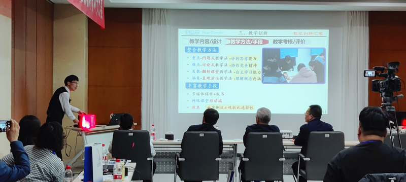 本次大赛以“推动教学创新,打造一流课程”为主题,以“落实以本为本,推动教授上讲台,推进智慧教育,强化学习共同体,引导分类发展”为目标,大赛设有正高组、副高组和中级组三个组别,分为课堂教学实录视频(占比50%)及课程教学创新成果报告(占比15%)网络评审和教学创新设计汇报(占比35%)现场评审两个环节。其中网络评审阶段,由全省75位评审专家对课堂教学实录视频、教学创新成果报告、教学大纲等材料进行评审;现场评审阶段由参赛主讲教师结合教学大纲和教学实践,全面说明整门课程的设计思路,突出教学改革与创新,展示相关过程性支撑资料。