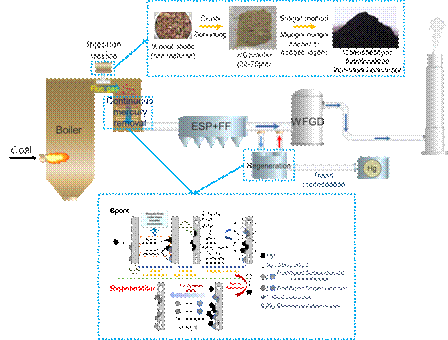 中国因人为汞排放面临着越来越大的国际压力与挑战,电力行业是完成汞减排任务的重要突破点,而现阶段电厂无专门的汞排放控制装置。根据中国目前实际情况,并结合山西核桃产量位居全国第二的应用背景,砥砺团队提出了以核桃壳生物质作为原料制备经济高效的汞吸附剂,从而实现“以废脱毒”的技术路线。该方法不受煤种和燃烧工况的限制,具有广阔的应用前景。国内外尚未有相关的研究报道,吸附机理尚未确立。本论文以生物焦为载体,通过多元金属多层负载等功能化手段,获得了高效廉价的脱汞吸附剂,在获得改性生物焦Hg0脱除特性的基础上,利用多种表征分析手段研究样品的物质组成、晶相结构、热解特性、孔隙结构、微观形貌、元素价态和表面化学特性等,建立了改性生物焦理化性质与脱汞性能之间的构效关系。在识别生物焦吸附和氧化位点的同时,对前驱体制备与生物质热解、生物焦与所负载改性物质、不同负载金属自身之间的耦合作用机理及协同作用机制进行了研究。结合吸附动力学过程,利用程序升温脱附技术,揭示改性生物焦对Hg0氧化和吸附过程之间的深层次差异性机理,以及Hg0脱除过程的关键作用机制。