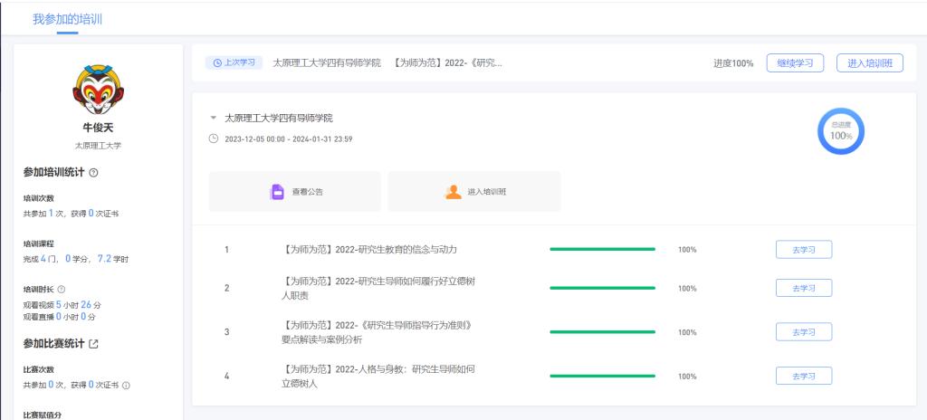 为深入贯彻习近平总书记关于全国广大教师要做“有理想信念、有道德情操、有扎实知识、有仁爱之心”好老师的要求,全面落实研究生导师立德树人根本任务,推动研究生导师队伍建设,根据《关于加快新时代研究生教育改革发展的意见》、《关于加强博士生导师岗位管理的若干意见》、《pa集团官网入口研究生指导教师工作规范(试行)》、《关于开展在岗研究生导师培训的通知》等文件精神,公司组织全体研究生导师及拟申报硕导的教师以线上线下、自学和集体学习的方式,积极参加中国学位与研究生教育学会开展的“四有导师”培训活动。