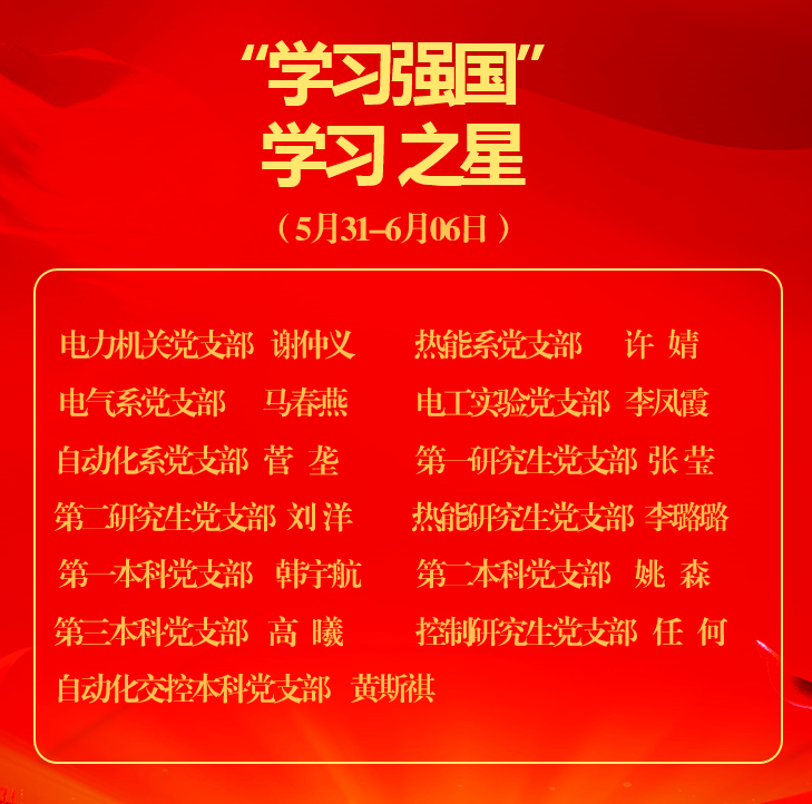 电力公司《学习强国》学习之星(2021年5月31日-6月6日)
