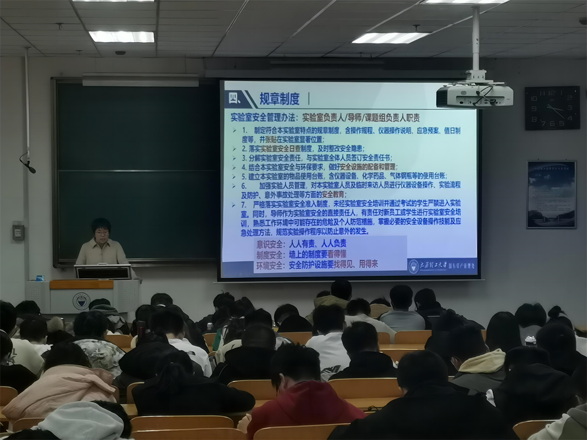 刘颜玲老师以近年来高校发生的实验室安全事故为切入,结合公司实验室基本情况,从实验室安全基础知识、实验安全管理办法、实验操作规程、实验室突发事故防范与应急处置、各种危险源的识别等方面展开讲解,对实验室安全进行警示教育,使同学们深入学习了实验室的基础知识及科研实验的规章制度、安全操作规程,更深刻认识到实验室安全的重要性。